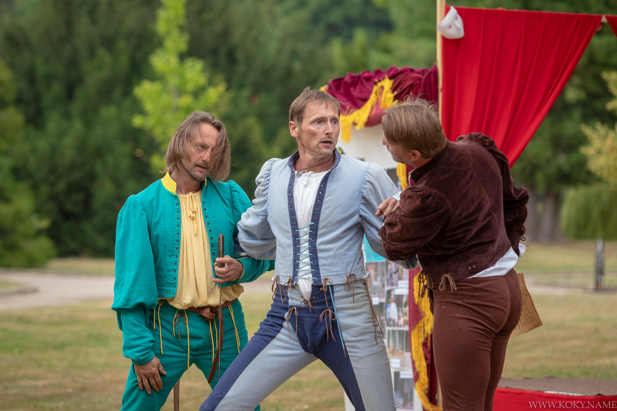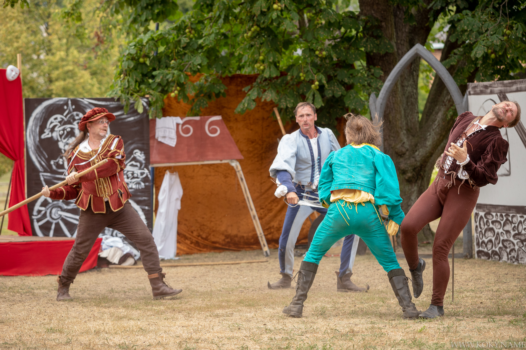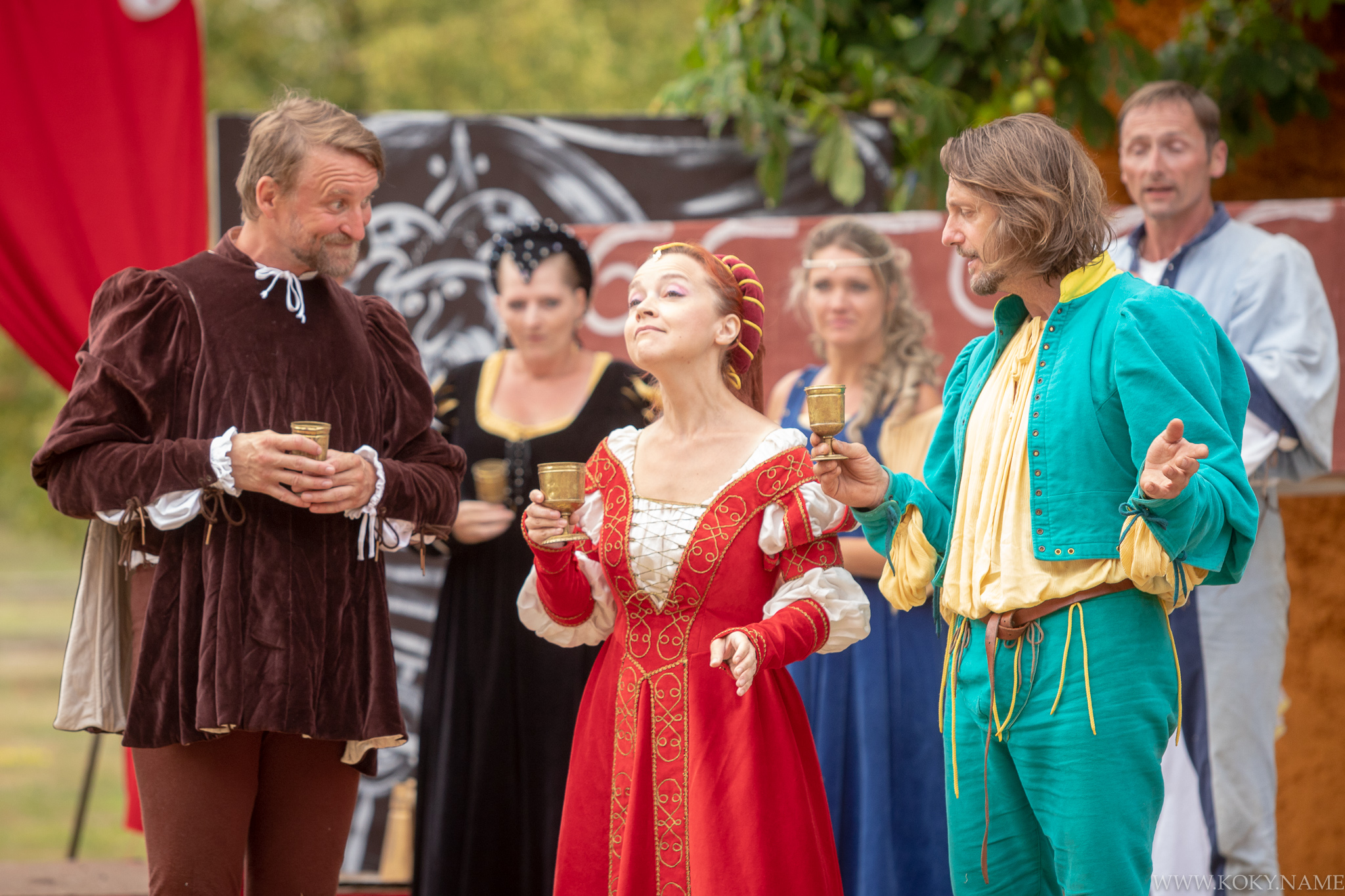 Skupina Stilet z Liberce uváděla v předzahradách zámku Sychrov své představení. Jde o příběh o milostném mnohoúhelníku a pokusu o nápravu záletníka